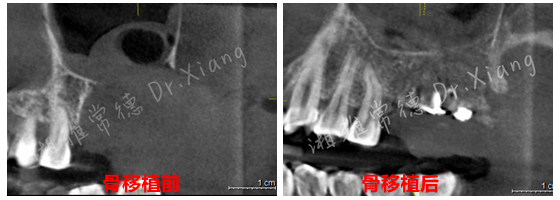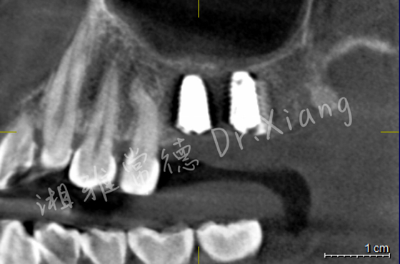 經(jīng)過9個月骨愈合后,患者復(fù)查錐形束CT,骨愈合十分滿意。9月中旬,向峰醫(yī)師種植團隊成功為患者實施了第二步的手術(shù),取出內(nèi)固定裝置的同時為患者成功微創(chuàng)的植入2枚種植體,完成了患者左上頜區(qū)域的軟硬組織的自然恢復(fù)和改建。