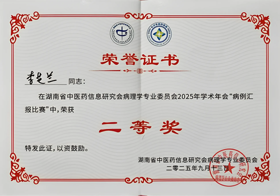 近日,湖南省中醫(yī)藥信息研究會病理學(xué)專業(yè)委員會2025年學(xué)術(shù)年會暨病理技術(shù)學(xué)組會議在省會長沙成功舉辦。本次年會匯聚了來自省內(nèi)外共150余名病理專家學(xué)者進(jìn)行學(xué)術(shù)交流,會議期間同步舉辦了病理醫(yī)師病例匯報比賽。湘雅常德醫(yī)院病理科李芝蘭主治醫(yī)師以《迷霧中的小息肉,一把分子鑰匙鎖定腸道腫瘤真兇》為題參賽,詳細(xì)介紹了一例罕見的原發(fā)于胃腸道腺泡狀軟組織肉瘤的診斷歷程。她憑借扎實的功底、縝密的思維、清晰的表述及提問式的演講,充分調(diào)動了現(xiàn)場氣氛,獲得一致好評,最終攬獲病例匯報比賽“二等獎”。