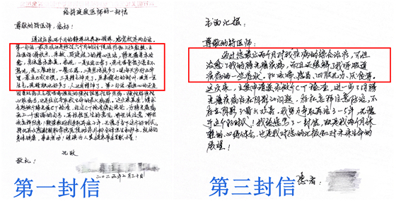 治療三個月后,張爺爺在第一封信中提到,呼吸道癥狀和膀胱不適明顯緩解,血尿基本停止。半年后,他在第二封信中高興地表示腫瘤已基本康復,身體和精神狀態(tài)大幅改善。又經(jīng)過兩個月的居家休養(yǎng),張爺爺寫來第三封信,提到自己現(xiàn)已三餐規(guī)律、每天步行三公里、睡眠質(zhì)量顯著提升,CT復查顯示膀胱腫瘤已近乎消失。身體的恢復讓他和家人重新燃起了對生活的希望。