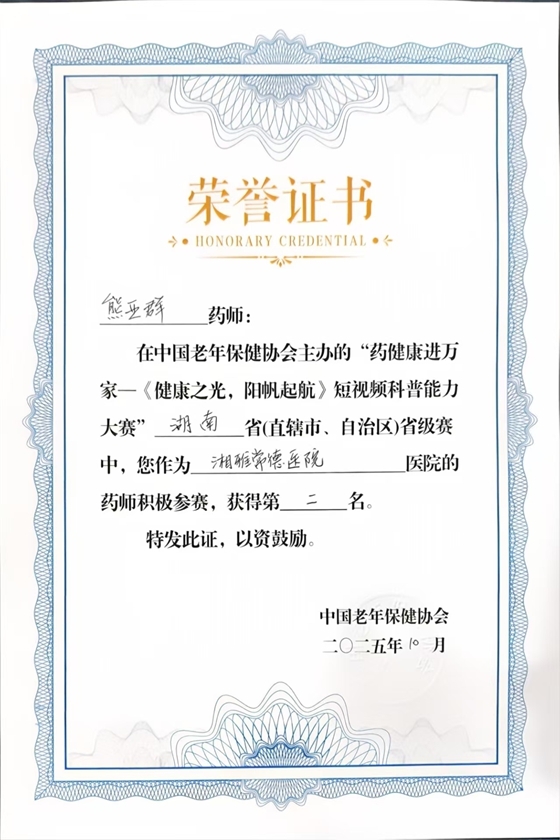近日,由中國老年保健協(xié)會、中國醫(yī)藥新聞信息協(xié)會兒童安全用藥分會聯(lián)合主辦,湖南省藥師協(xié)會承辦的2025年湖南省“藥健康進(jìn)萬家——《健康之光,揚(yáng)帆起航》”短視頻科普能力大賽總決賽...
