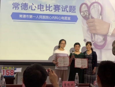 6月29日,由常德市醫(yī)學(xué)會(huì)心血管專業(yè)委員會(huì)、常德市心電生理與起搏專業(yè)委員會(huì)、常德市第一人民醫(yī)院組織,聯(lián)合舉辦了“湖南省心力衰竭及相關(guān)疾病診治新進(jìn)展會(huì)議”和“常德市首屆心電圖大賽”。全市共11家市/縣級(jí)醫(yī)院參賽,經(jīng)過數(shù)十道理論題與復(fù)雜心電圖閱圖的角逐,湘雅常德醫(yī)院心電圖室負(fù)責(zé)人王芳芳主管技師與常德市第二人民醫(yī)院心電圖室副主任醫(yī)師祝麗萍組建的“市二醫(yī)院和湘雅常德醫(yī)院代表隊(duì)”,榮獲常德市首屆心電大賽一等獎(jiǎng)。