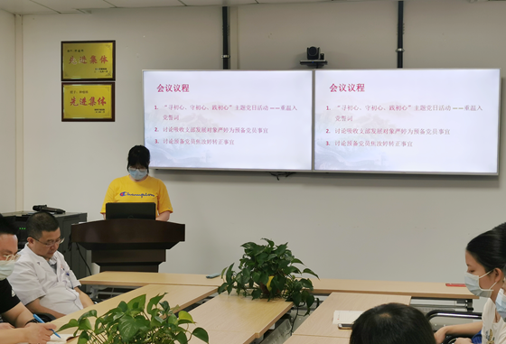 6月22日晚,中共湘雅常德醫(yī)院第一黨支部在腫瘤科示教室召開了二季度支部黨員大會,主要議題為討論吸收支部的1名發(fā)展對象為中共預(yù)備黨員,1名預(yù)備黨員轉(zhuǎn)為正式黨員相關(guān)事宜。本次會議由支部書記周敏同志主持,支部非值班正式黨員、入黨積極分子參加。
