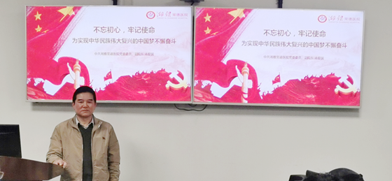 本次會(huì)議共分為兩項(xiàng)議程,大會(huì)第一項(xiàng)議程為黨委委員、副院長(zhǎng)湯愛(ài)國(guó)同志以“不忘初心,牢記使命,為實(shí)現(xiàn)中華民族偉大復(fù)興的中國(guó)夢(mèng)不懈奮斗”為主題上了一堂生動(dòng)的黨課,湯愛(ài)國(guó)同志為大家講述了“什么是共產(chǎn)黨人的初心”、“為什么要不忘初心”、“如何牢記初心”三方面內(nèi)容,帶領(lǐng)大家回顧了黨的歷史,認(rèn)清了肩上使命,并結(jié)合我院實(shí)際情況,分析了局勢(shì)和日后發(fā)展方向,為大家點(diǎn)亮了前方的道路。各位黨員認(rèn)真學(xué)習(xí)了黨課內(nèi)容,進(jìn)一步堅(jiān)定了理想信念,作為一名醫(yī)務(wù)人員,要全心全意為病人服務(wù),為臨床一線服務(wù),為老百姓的健康保駕護(hù)航,為湘雅常德醫(yī)院的建設(shè)和發(fā)展貢獻(xiàn)我們應(yīng)有的力量。