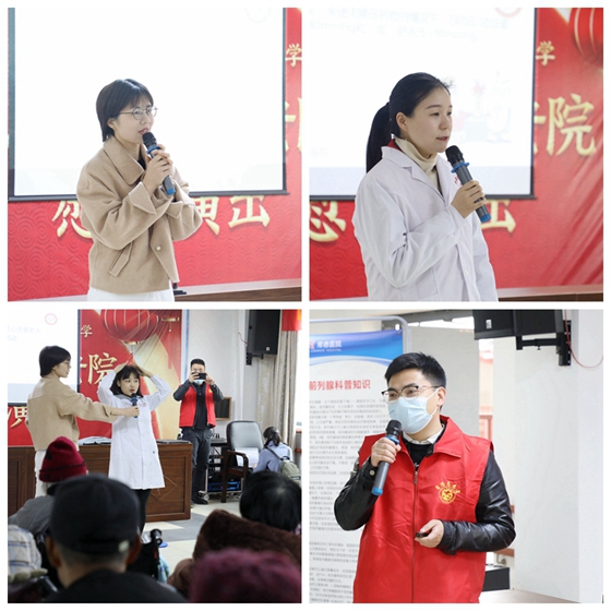活動以中老年人最關(guān)心的高血壓科普講座展開,健康管理中心葛菲凡醫(yī)師以“關(guān)愛健康 從關(guān)注血壓開始”為主題詳細(xì)地講解了什么是高血壓、高血壓的表現(xiàn)以及預(yù)防高血壓等知識。康復(fù)中心魯婷則親身示范,教老人們“強(qiáng)身健體操”,以提高身體素質(zhì)、提高心肺功能和肌肉耐力,促進(jìn)肌體各組織器官的協(xié)調(diào)運(yùn)作,使人體放松達(dá)到最佳機(jī)能狀態(tài)。泌尿外科朱敏主治醫(yī)師以“前列腺增生·前列腺癌”為主題為老人們科普了為何頻繁夜尿、怎么解決夜尿頻繁等健康知識。