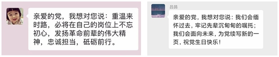 活動發(fā)起后,同志們積極響應(yīng),紛紛以文字表達了對黨的衷心祝福,對國家的自豪與感恩。